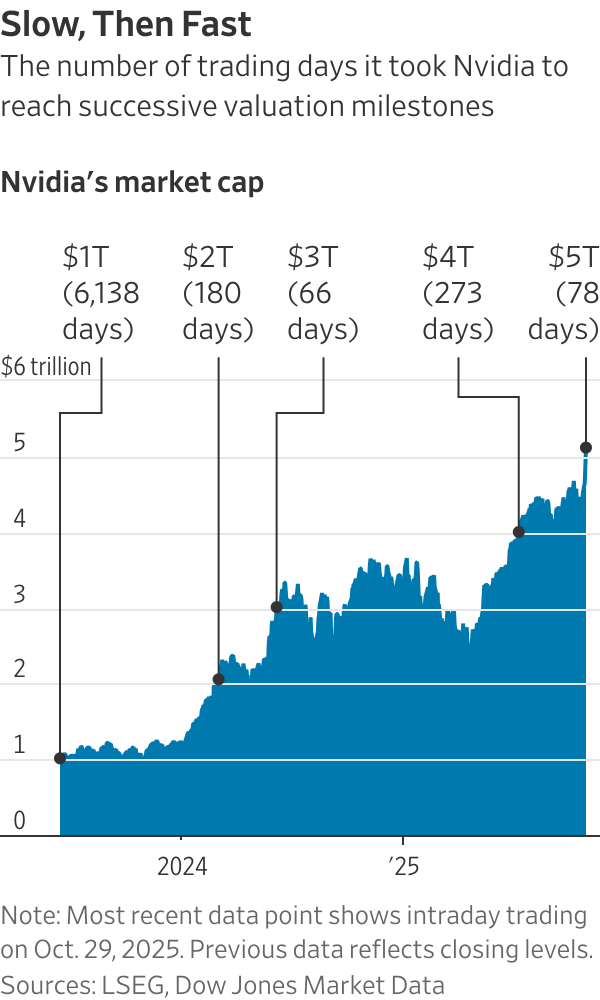美国时间周三,英伟达的市值正式突破5万亿美元大关。仅仅一年多时间,它就完成了从2万亿到5万亿的惊人三级跳,其涨势之迅猛,让整个华尔街都为之侧目。