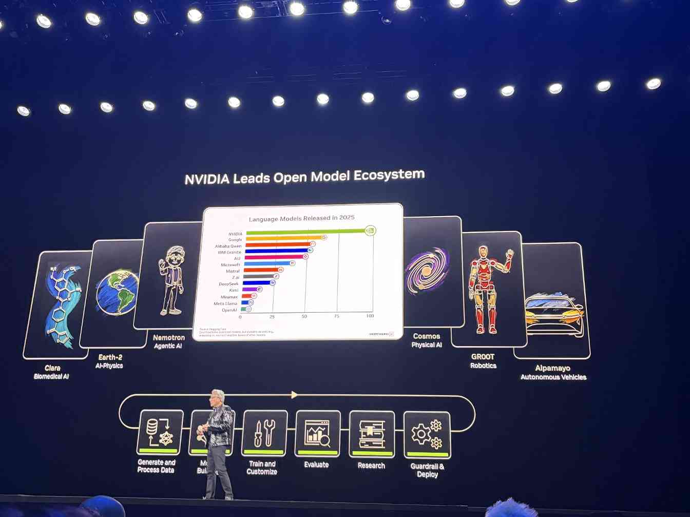 因此,在这个平台之上,英伟达也是一个前沿AI模型构建者,我们以一种非常特殊的方式构建:我们完全以开放的方式构建,以便让每家公司、每个行业、每个国家都能成为这场AI革命的一部分。