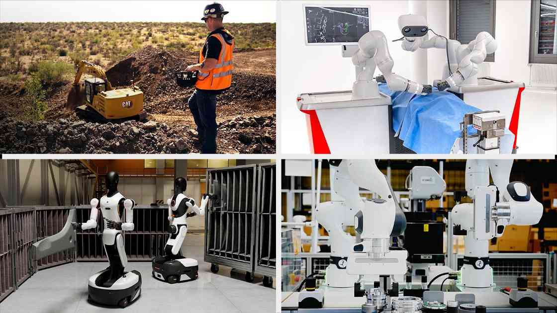 这些机器人身上有微型Jetson计算机,它们是在Omniverse里面训练出来的。机器人模拟器叫Isaac Sim和Isaac Lab。 我们有很多建造机器人的朋友,包括New Robot、AG Bot、LG、卡特彼勒(他们有史上最大的机器人)、Serve Robot、Agility、波士顿动力、Franka以及Universal Robots等。