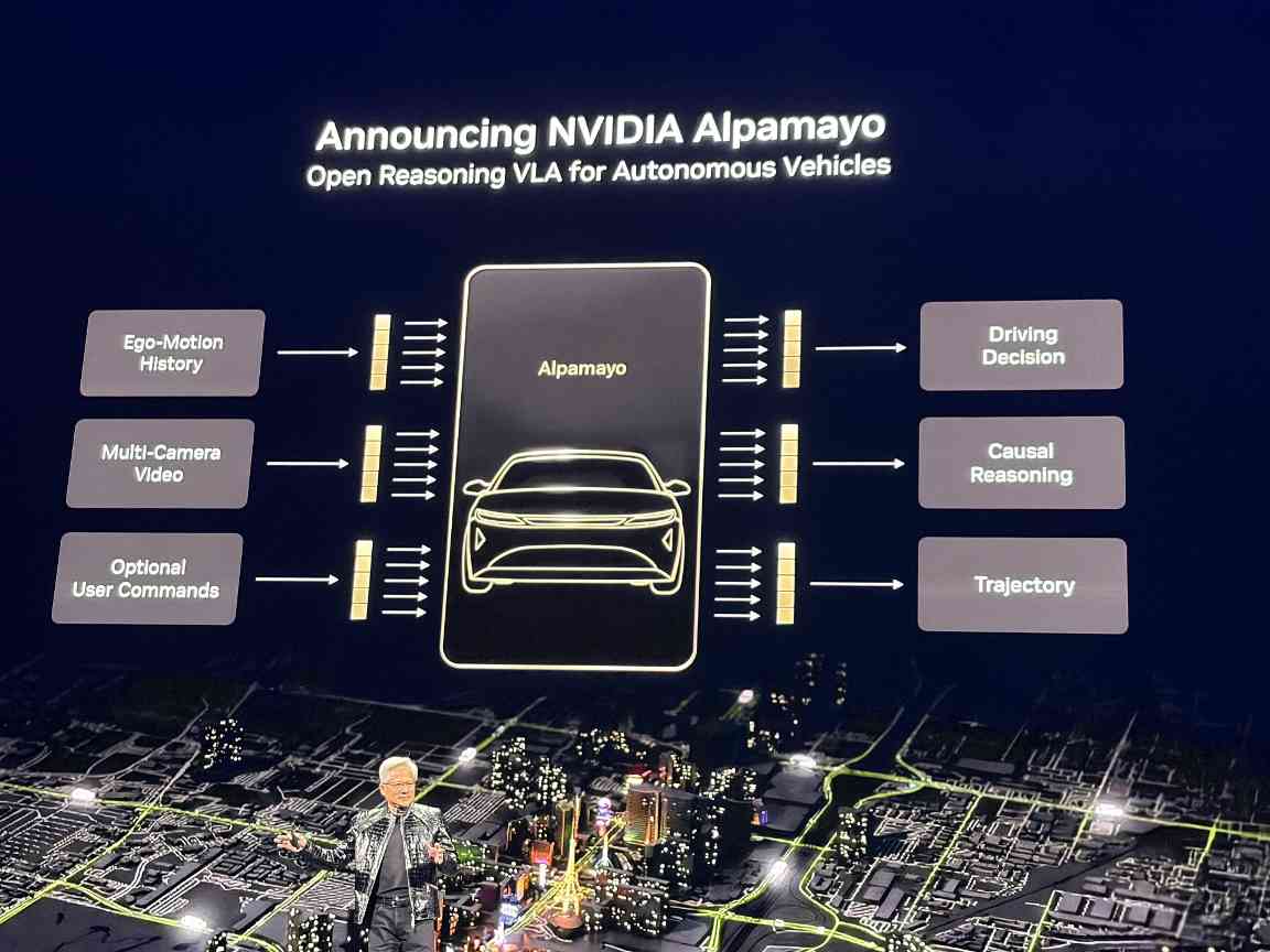 黄仁勋演讲的重头戏在于“物理AI”。英伟达正致力于让AI理解重力、惯性、因果关系等物理定律。为此,黄仁勋发布了世界首个会思考、会推理的自动驾驶AI——Alpamayo。它不仅能开车,还能像人类一样解释“为什么这么开”。这标志着AI正式从屏幕后的对话框,走向现实世界的自动驾驶汽车与人形机器人。