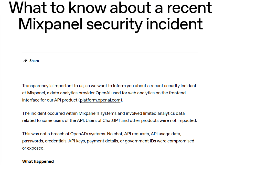 如果说被入侵是“天灾”(好吧,人祸),那么接下来Mixpanel的动作,就是让OpenAI忍无可忍的“致命失误”。